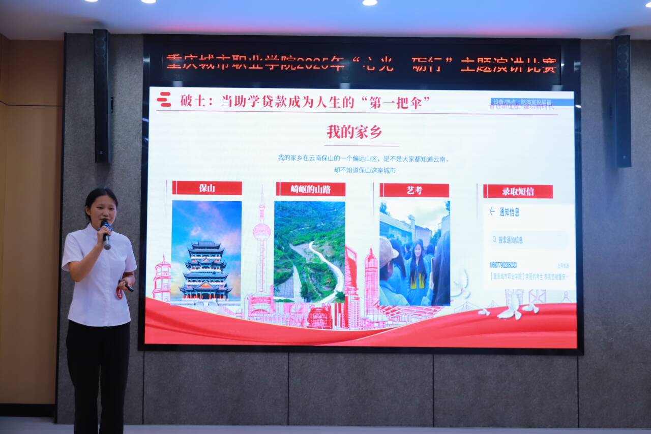 为弘扬青春正能量,激励学子砥砺前行,重庆城市职业学院2025年“心光・砺行” 主题演讲比赛校级决赛于6月2日在龙翔园121路演厅隆重举行。